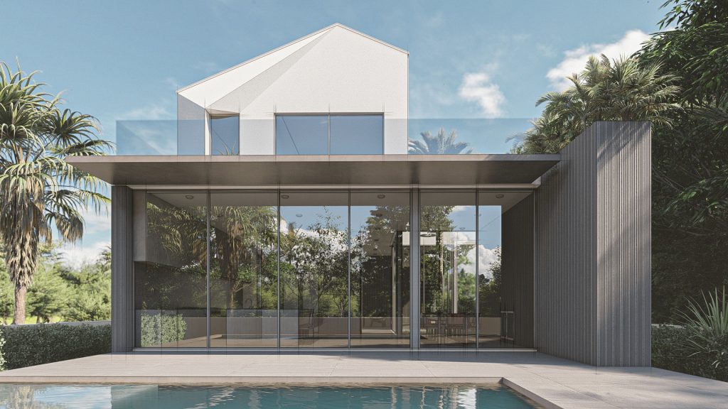 This property is an ideal opportunity located in Lake View, one of Miami's most family-friendly neighborhoods. The property is located only a short distance from La Gorce Country Club and Fisher Park, and is driving distance from Miami's most famous beaches. As is, the property has an open floor plan with 2,926 total sq ft., 3 bedrooms and 3 bathrooms, with a generous formal living and family room that comes equippped with a bar and entertainment area, a spacious dining room, and an expansive pool. This home could be spectacular with a custom renovation. The idea for this design is to have two, clearly defined stacked volumes to visually break up the size of the home and be more in line with the smaller, quaint feel of the neighborhood. The first floor volume blends in with the natural elements and environment by using darker/earthy tones and larger glass openings to have more of an open and indoor-outdoor feel in the common areas. For the 2nd floor volume, we want this to feel like a precious stone that is elevated and private. This white and pristine geometry is more prism-like which relates, in a modern way, to the triangular shaped roofs in the neighborhood. Windows and openings are used more appropriately for this type of geometry.